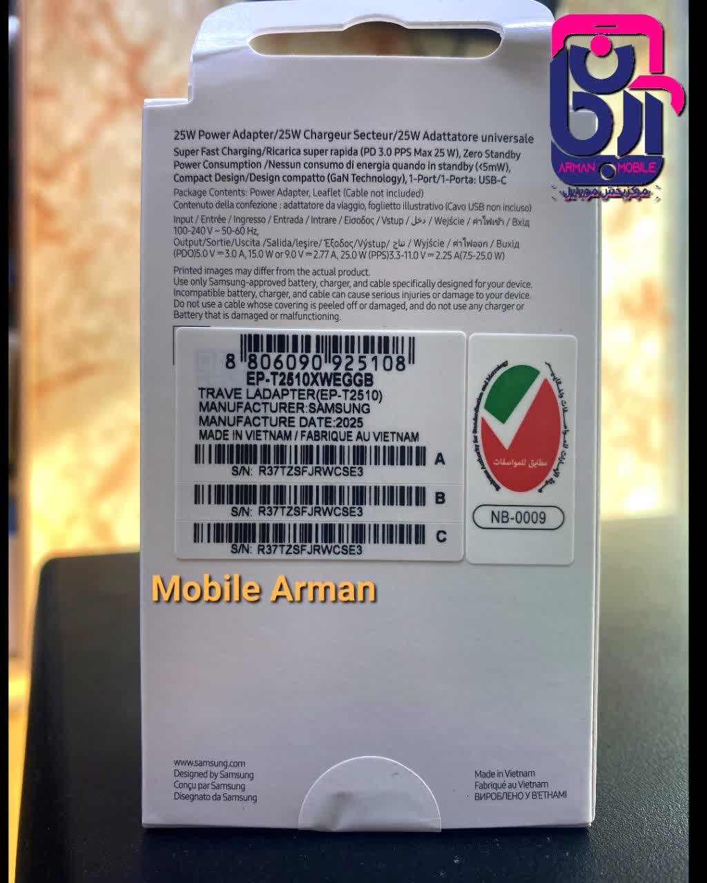 شارژر سامسونگ مدل EP-T2510 25W سه پین اصل