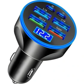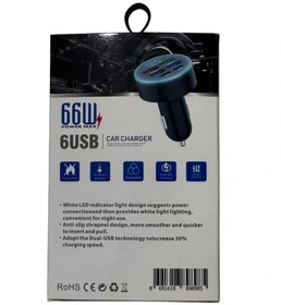 شارژر فندکی 66W شش پورت به همراه کابل دو پورت PD و چهار پورت USB