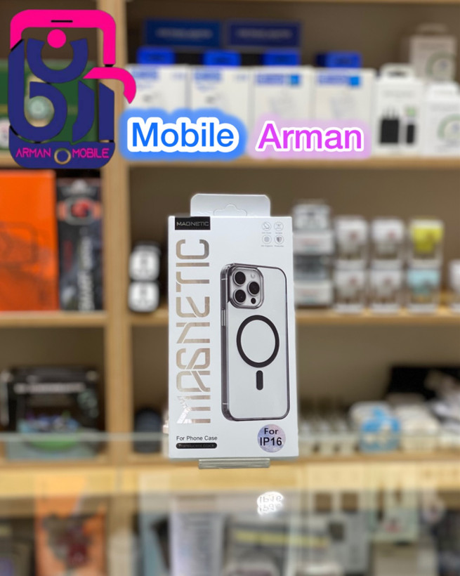 قاب اورجینال شفاف پک دار دور ژله ای مگ سیف مشکی Magnetic ایفون 16 ip16