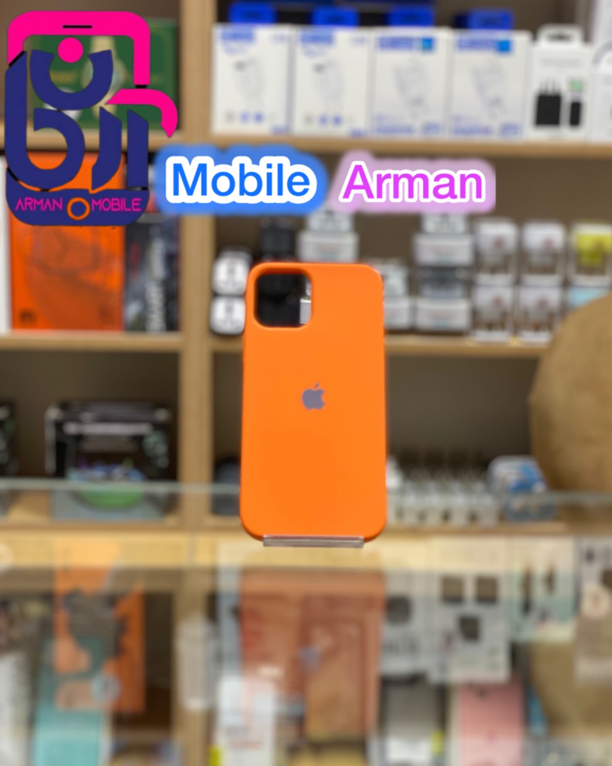 قاب طرح سیلیکونی نارنجی بدون محافظ لنز آیفون12پرو/12 IP12PRO/12
