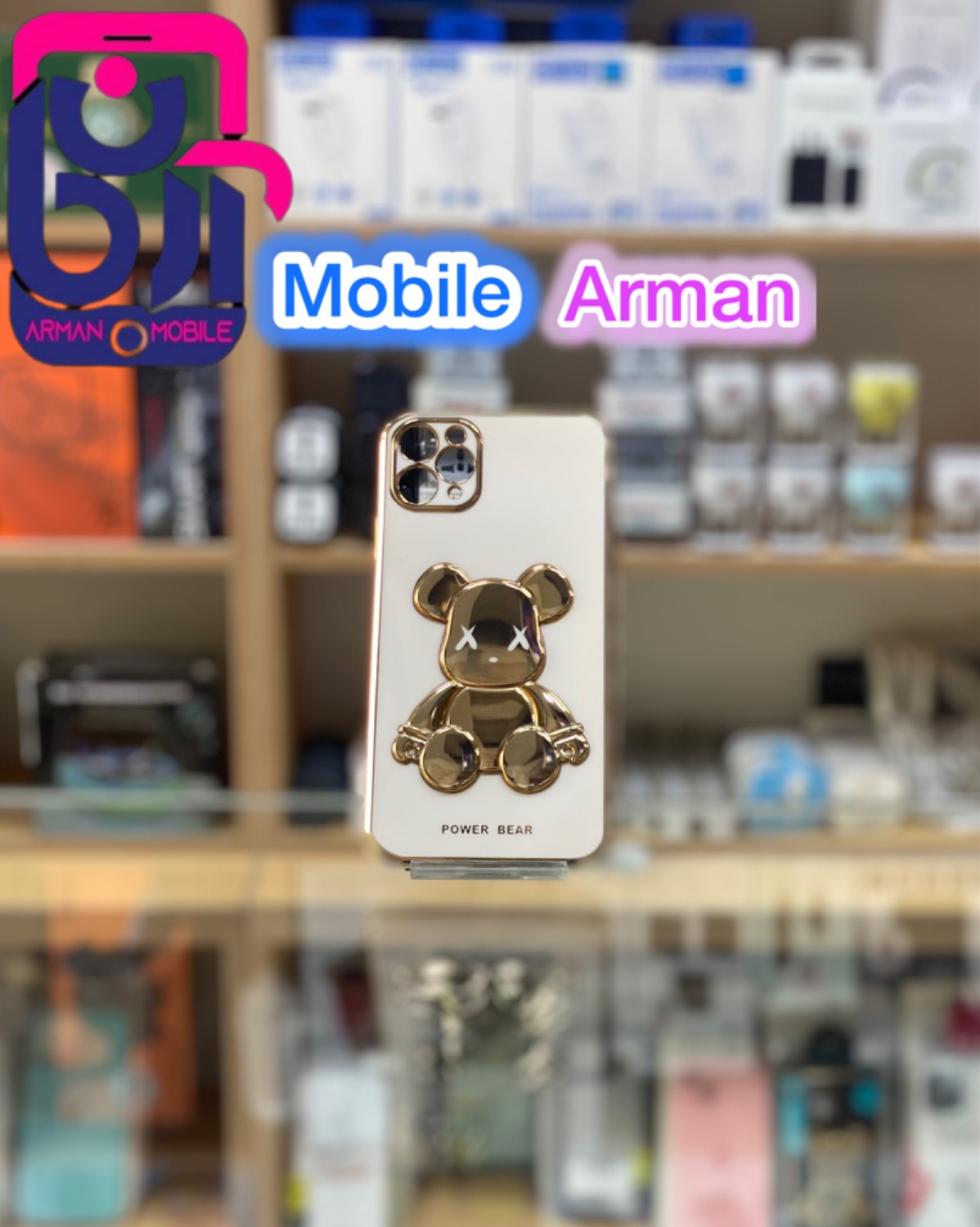 قاب سفیدطلایی محافظ لنزدار POWER BEARN آیفون11پرومکس IP11PROMAX