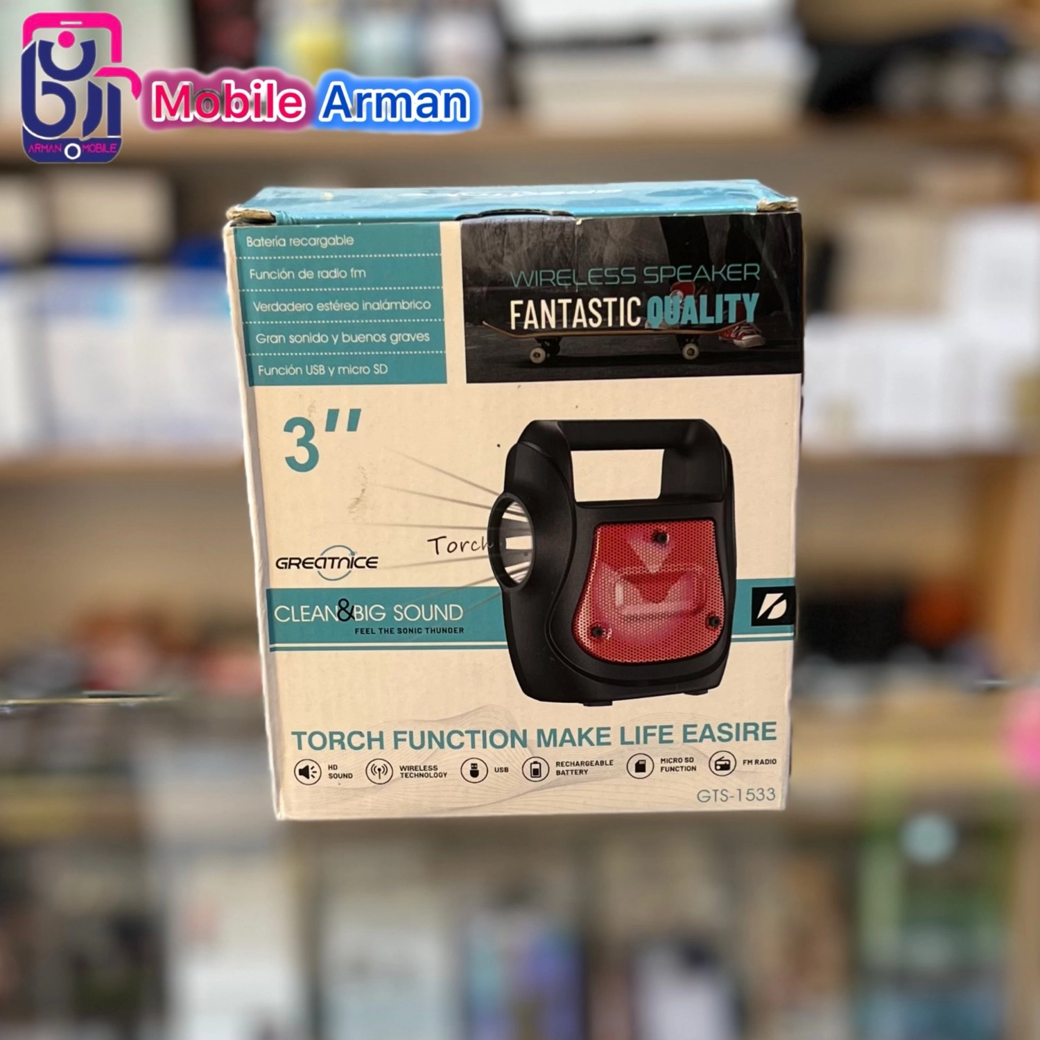 اسپیکر بلوتوثی قابل حمل مدل ۱۵۳۳ با چراغ قوه پر نور سه حالته (پر نور -کم نور-SOS) که علاوه بر داشتن صدای با کیفیت، محصولی بسیار کاربردی برای افرادی است که اهل سفر و تفریح هستند.